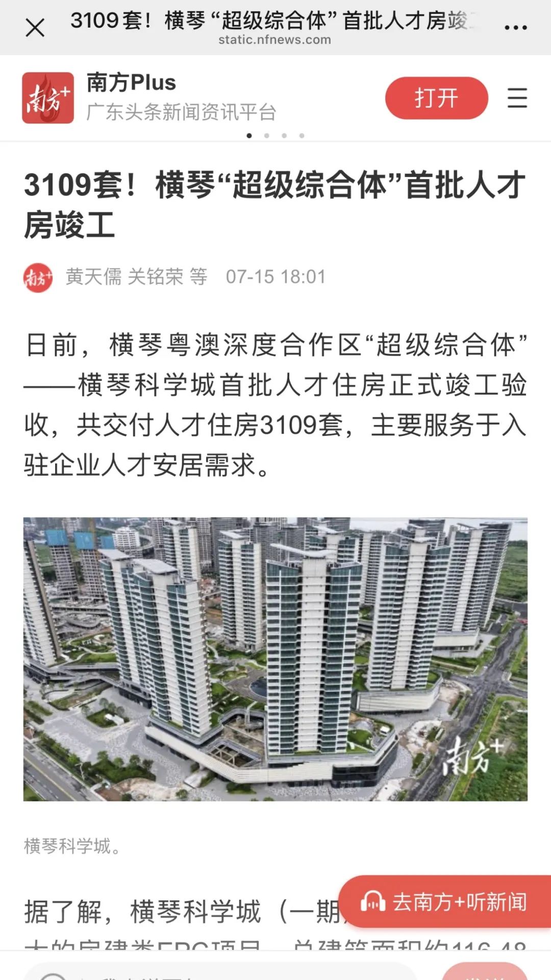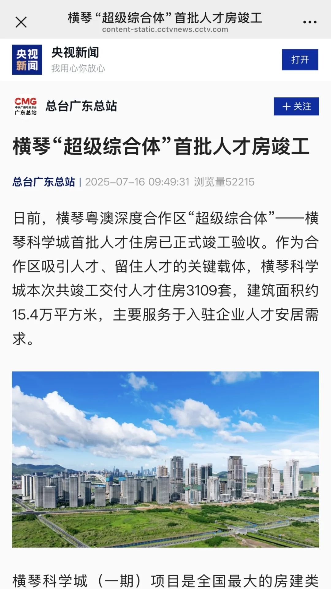 橫琴科學(xué)城項(xiàng)目分三期建設(shè),一期涵蓋住宅、公寓、幼兒園與保育園、商業(yè)、酒店等多元產(chǎn)品組合;二期、三期涵蓋產(chǎn)業(yè)辦公、研發(fā)空間、創(chuàng)業(yè)孵化器、會(huì)議中心、綜合運(yùn)動(dòng)場(chǎng)館及人才公寓等產(chǎn)城融合一體化產(chǎn)品,聚焦國(guó)際教育、跨境貿(mào)易、智能科技三大主導(dǎo)產(chǎn)業(yè),以及金融服務(wù)、醫(yī)療健康、資產(chǎn)總部等X個(gè)特色產(chǎn)業(yè),加快形成新質(zhì)生產(chǎn)力,打造廣珠澳科技創(chuàng)新走廊的重要支點(diǎn)。